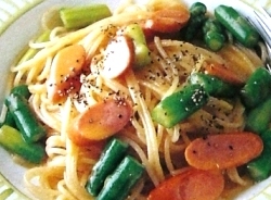 10.アスパラとソーセージのカルボナーラ